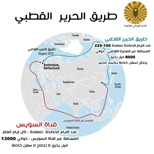 The Polar Silk Road, or the navigation path through the Polar Ocean and the North Sea, shortens the distance between China and Europe by about half compared to the path through the Suez Canal. However, there are several natural, technical, and financial obstacles facing this path, the first of which is that it is not navigable throughout the year, but can be navigated during an extended period. From 105-225 days a year, in addition to ships needing icebreakers to open the path in front of them. Above all, not all ships are suitable for sailing in icy waters, which means the need for special ships to navigate in icy waters. Therefore, it is practically impossible to rely on the Polar Silk Road, but it will be There is a complex route that requires that some goods be shipped on ships suitable for ice navigation throughout the period in which navigation is possible in the Polar Ocean, and the rest of the period is through the Suez Canal.